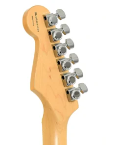Seu braço apresenta perfil “C” confortável, escala de 25,5” e nut de 1-11/16”, oferecendo excelente tocabilidade. O instrumento conta ainda com ponte tremolo American Deluxe e tarraxas travantes, garantindo estabilidade na afinação, mesmo em performances intensas.