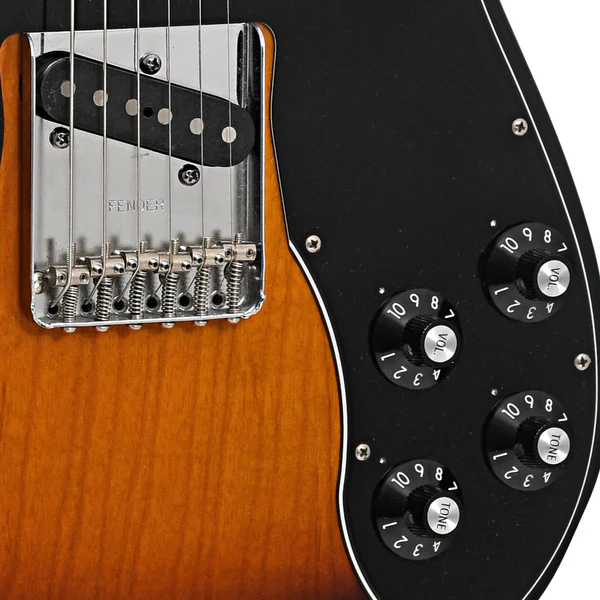 O braço em maple, perfil “C” médio, nut de ~42 mm (~1-5/8″) e escala de 25,5″ garantem conforto e precisão. Os captadores combinam o clássico single-coil na ponte com o robusto Wide Range humbucker no braço — resultando em um timbre que vai do twang brilhante a um timbre encorpado, ideal para rock, blues, country e vintage pop.