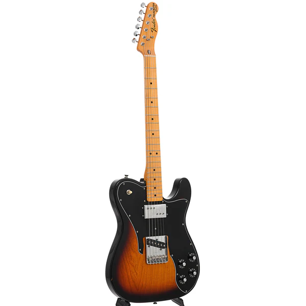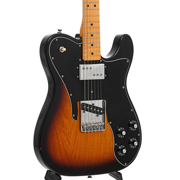 A Fender American Vintage ’72 Telecaster Custom (reedição de 2011) oferece a autêntica atmosfera de uma clássica Tele dos anos 70 com acabamento refinado e timbre excepcional. Seu corpo em ash com acabamento gloss três tons sunburst proporciona ressonância clara e visual marcante.