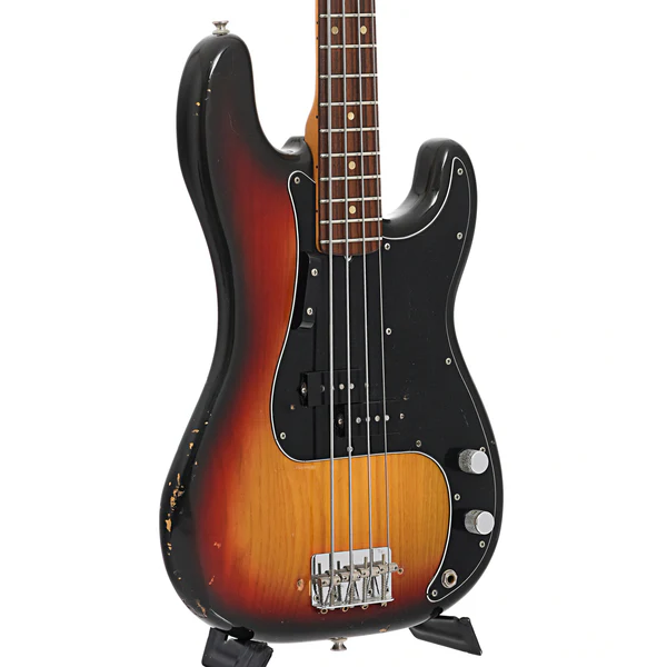 Descubra o lendário Fender Precision Bass de 1975, uma verdadeira relíquia do baixo elétrico. Com 49 anos de história, este P-Bass apresenta acabamento 3-tone sunburst com body em ash, braço one-piece maple com escala em rosewood, e 20 trastes com marcadores de pearloid. A largura do nut de 1-5/8″ (aproximadamente 41 mm) e escala de 34″ garantem a experiência clássica Fender.