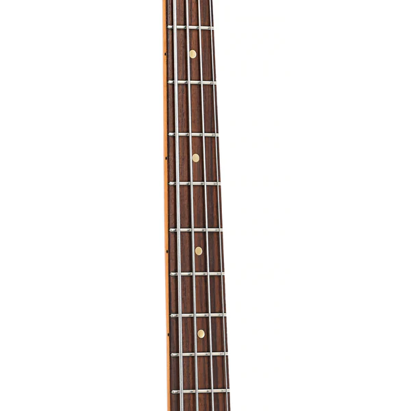 Equipado com um captador split-coil, controle de volume e tone, além de ponte top-loading com saddles tipo “barrel” – ideal para manter o timbre autêntico e resposta rápida. Os tampões do captador e ponte estão incluídos, assim como tarraxas abertas com botões tipo paddle, e acompanha o valioso case rígido original com forro laranja.