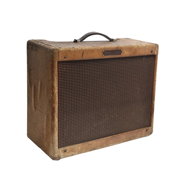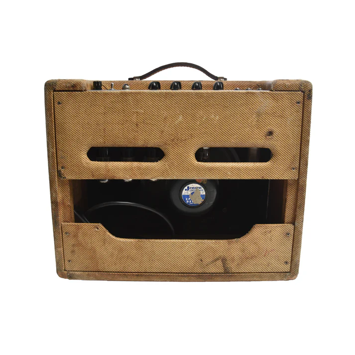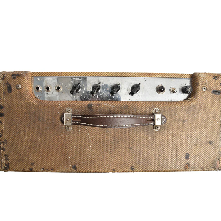 Construído em um gabinete tweed narrow panel, o modelo apresenta sinais de uso típicos de sua idade, mas mantém a integridade sonora e a personalidade única dos anos 50. Recentemente revisado, recebeu novos capacitores, cabo de energia atualizado e uma alça substituída, garantindo confiabilidade para estúdio ou palco.