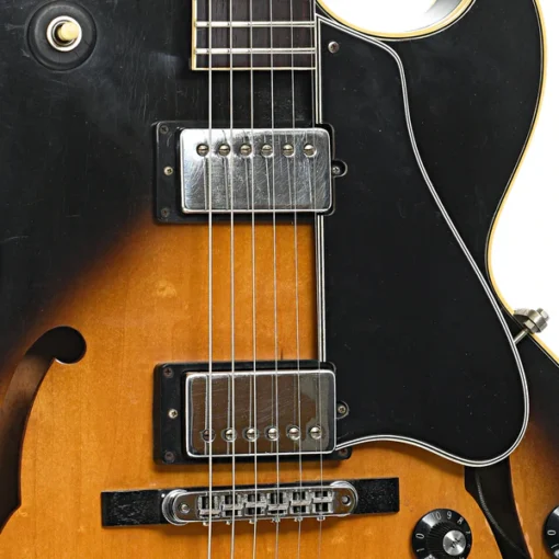 Gibson ES-335 (anos 70): Embora também seja semiacústica, traz centro sólido em maple, oferecendo mais sustain e menos feedback em alto volume, preferida para blues e rock.