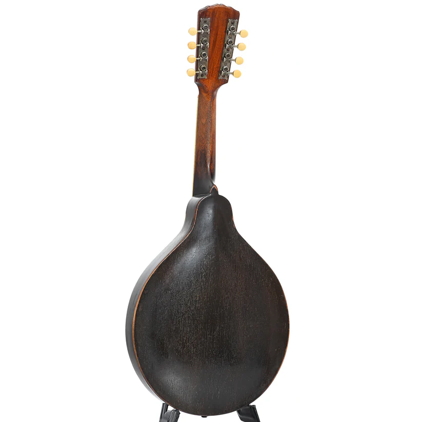 Seu corpo estilo A-style de 11-1/4″, com tampo em abeto sólido com acabamento preto, laterais em bétula e braço em mogno, oferece um timbre equilibrado, quente e cheio de projeção. A escala em jacarandá (rosewood), recém-refretada, proporciona tocabilidade suave e precisão incomparável.