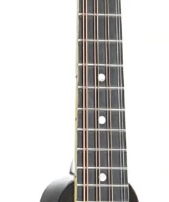 Seu corpo estilo A-style de 11-1/4″, com tampo em abeto sólido com acabamento preto, laterais em bétula e braço em mogno, oferece um timbre equilibrado, quente e cheio de projeção. A escala em jacarandá (rosewood), recém-refretada, proporciona tocabilidade suave e precisão incomparável.