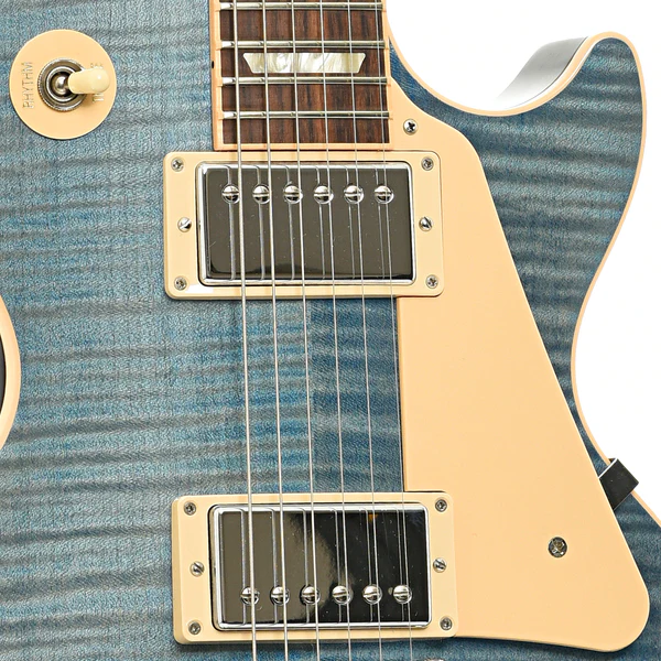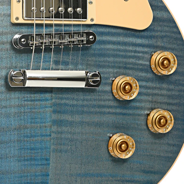 Com acabamento Ocean Blue gloss sobre um tampo de maple figurado, corpo e braço em mogno e escala em rosewood com binding, o instrumento entrega beleza e sonoridade de alto nível. O destaque vai para o inlay especial “120th Anniversary” no 12º traste, tornando cada unidade um verdadeiro item de colecionador.