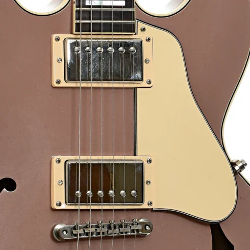 O corpo em maple semi-hollow com bloco central em maple garante clareza e definição, enquanto o braço em mogno com escala em rosewood proporciona conforto e tocabilidade excepcional. Os captadores humbuckers com adesivo “PAF” entregam um timbre quente, encorpado e clássico, ideal para jazz, blues e rock.