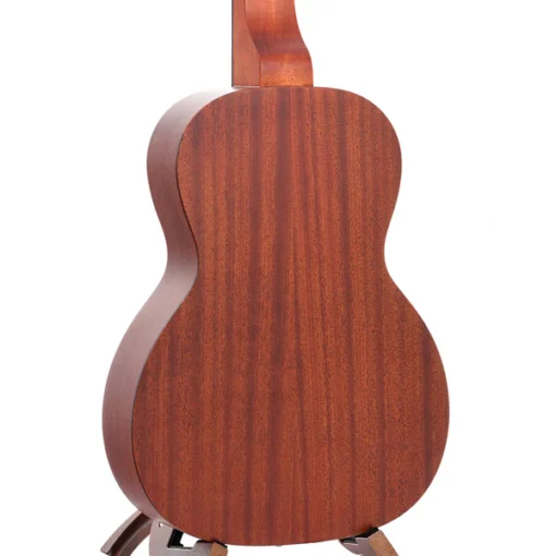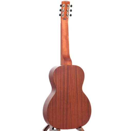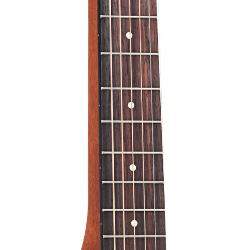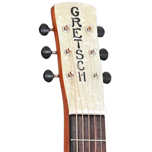 O braço de mogno com acabamento vintage semi-brilho apresenta um perfil squareneck tradicional, perfeito para execução com slide, com escala de 25 polegadas e 19 trastes medium jumbo, permitindo conforto e precisão na performance. Os detalhes clássicos como o headstock Gretsch dos anos 1930 com face de pérola envelhecida e as tarraxas Grover Sta-Tite garantem afinação estável e visual autêntico.