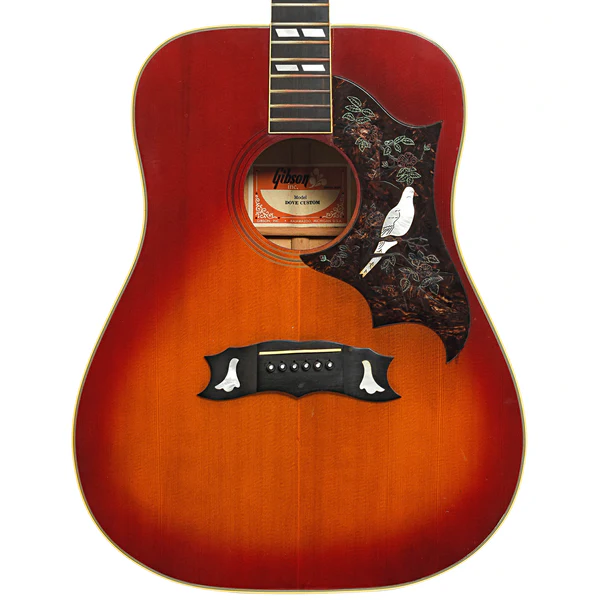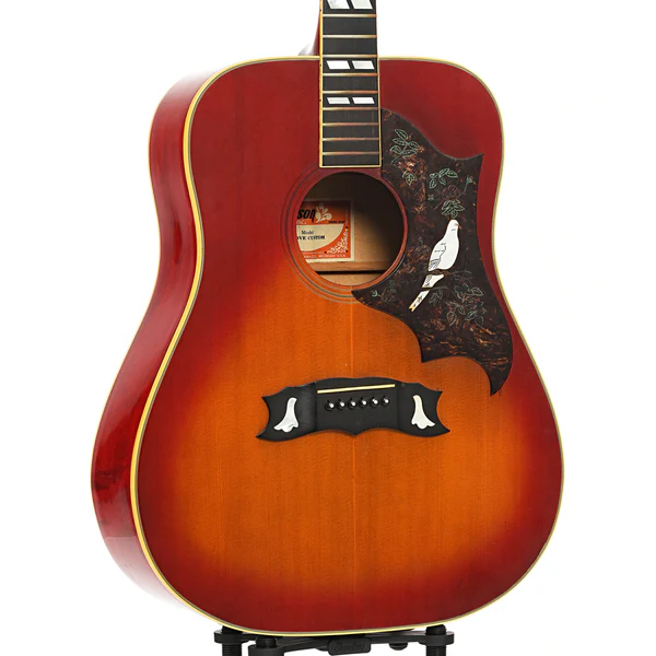 | Gibson Dove (geral, 1962–1996) | Maple e spruce padrão, bracing mais pesado após 1968, som mais contido. Preço médio 1980–1996: US$1.600–US$2.100 |