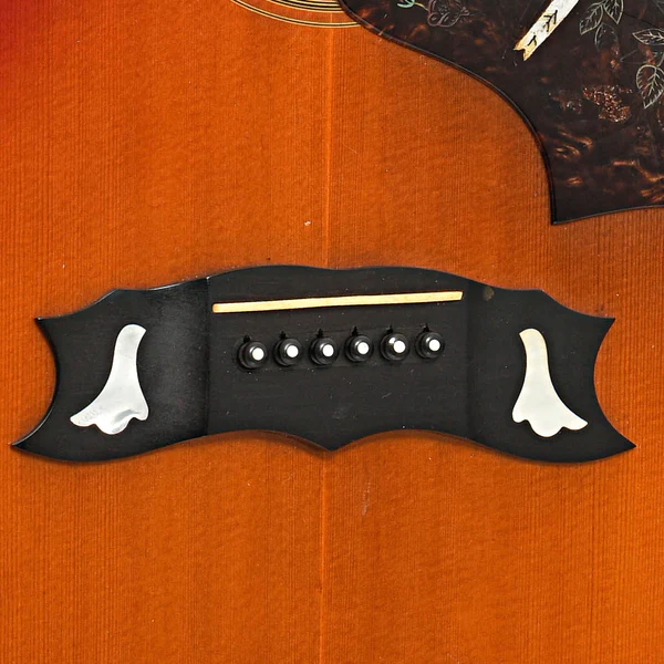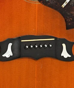 Ponte “mustache” em ébano, ornada com inlay floral em pêrola (note que está faltando um pino de corda).