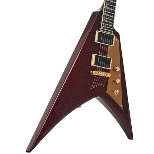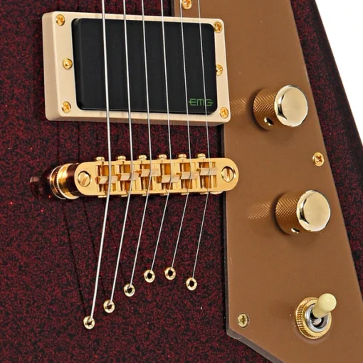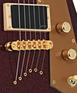 O hardware dourado inclui tarraxas LTD Locking, ponte TonePros Locking TOM com string-thru e nut moldado de 42 mm, garantindo estabilidade de afinação e durabilidade. A guitarra vem acompanhada de um case rígido V-Alexi, proporcionando proteção segura durante o transporte.
