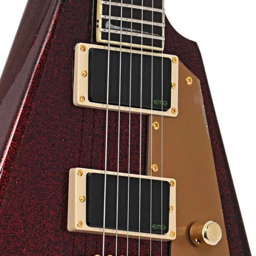 A ESP LTD KH-V Kirk Hammett Signature se destaca por sua construção neck-thru, captadores EMG Bone Breaker e acabamento premium, oferecendo desempenho superior para guitarristas exigentes.