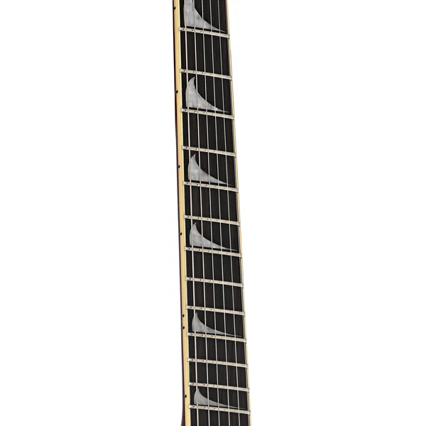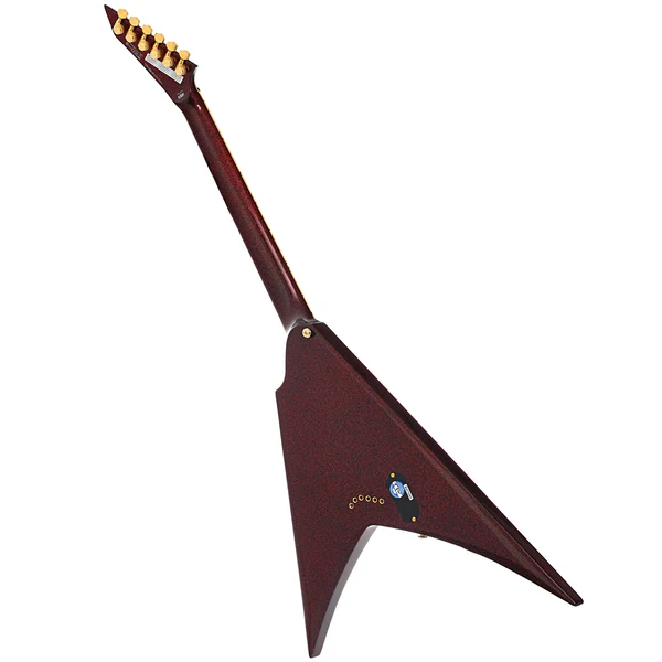 A guitarra elétrica ESP LTD KH-V Kirk Hammett Signature é uma homenagem ao lendário guitarrista do Metallica, projetada para oferecer desempenho superior e estilo inconfundível. Com construção neck-thru, corpo em Korina e braço em Maple de 3 peças, esta guitarra proporciona sustain e ressonância excepcionais. O braço extra fino em U e o raio de 350 mm garantem conforto e agilidade para solos rápidos.