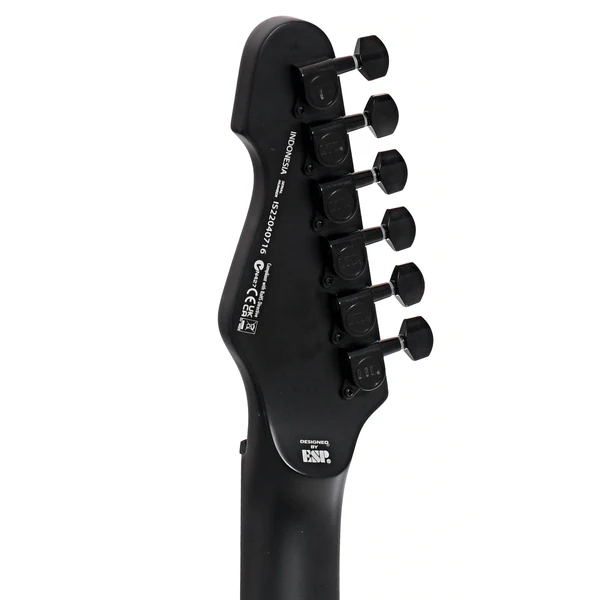 Equipada com um único captador humbucker ESP LH-150B, a TE-201 oferece sonoridade encorpada, ideal para rock, metal e pop. O controle de volume com push-pull permite dividir o captador para sons de single coil, ampliando ainda mais as possibilidades tonais. O acabamento Black Satin confere um visual sofisticado e moderno ao instrumento.