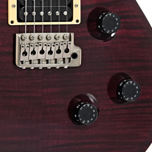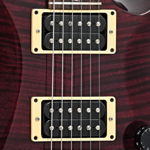 A PRS Custom 24 de 2003 se destaca por seu acabamento Raspberry vibrante e tampa 10-top flamejada, oferecendo uma estética única. Comparada com outros modelos da mesma linha, como a versão Brazilian Limited, que apresenta jacarandá brasileiro, ou a Grey Black, com tampa flamejada, a Custom 24 2003 oferece uma combinação equilibrada de estética e desempenho.