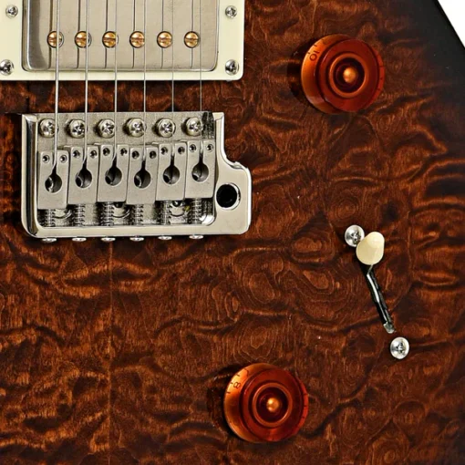 Equipada com o sistema de tremolo patenteado da PRS e tarraxas seladas, esta guitarra garante estabilidade de afinação mesmo sob uso intenso. A escala de 25″ e o braço com 24 trastes médios jumbo facilitam o acesso às notas mais agudas.