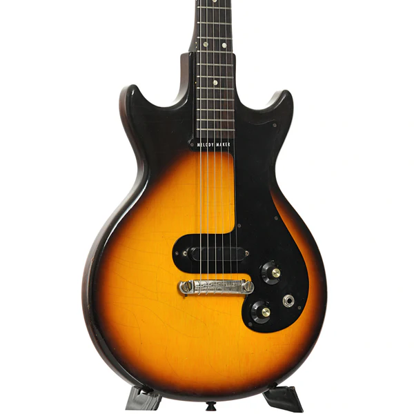 Gibson Melody Maker Full Size 1964: Versão maior com mais versatilidade para palco, mantendo timbre semelhante, mas mais confortável para mãos grandes.