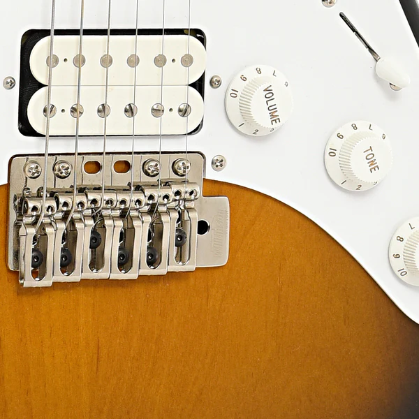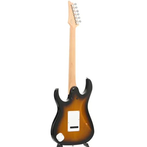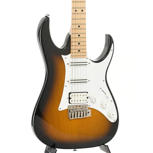 Seu corpo em alder proporciona um timbre equilibrado, com graves encorpados e agudos brilhantes, enquanto o braço de maple de peça única, com 22 trastes, garante uma pegada rápida e confortável, perfeita para solos complexos e técnicas de shred. O acabamento sunburst clássico valoriza o design elegante e vintage da guitarra.