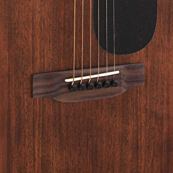 O Martin 000-15SM é um violão de sonoridade profunda e caráter orgânico, fruto da construção inteiramente em mogno maciço — tampo, fundo, laterais e braço — que proporciona um timbre quente, equilíbrio entre médios e graves e alta resposta dinâmica. O projeto com braço preso no 12º traste desloca a ponte em direção ao centro do tampo, aumentando a resposta de graves e o sustain; o headstock vazado confere apelo estético clássico e tocabilidade vintage. O perfil de braço Modified Low Oval aliado à escala de 25,4” (≈ 645 mm) e largura de pestana de 1 3/4” (≈ 44,45 mm) garante conforto para execução fingerstyle e para técnicas como slide e ornamentações. Acabamento acetinado, roseta discreta e detalhes minimalistas completam um instrumento pensado para músicos exigentes.