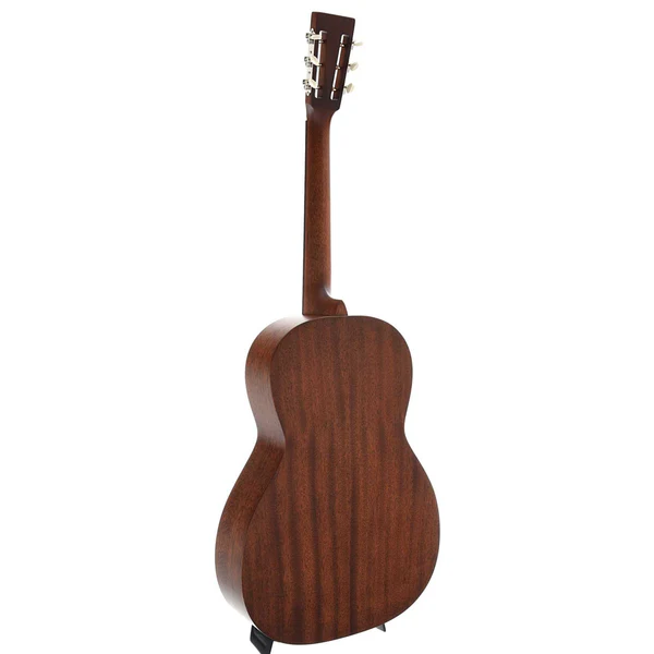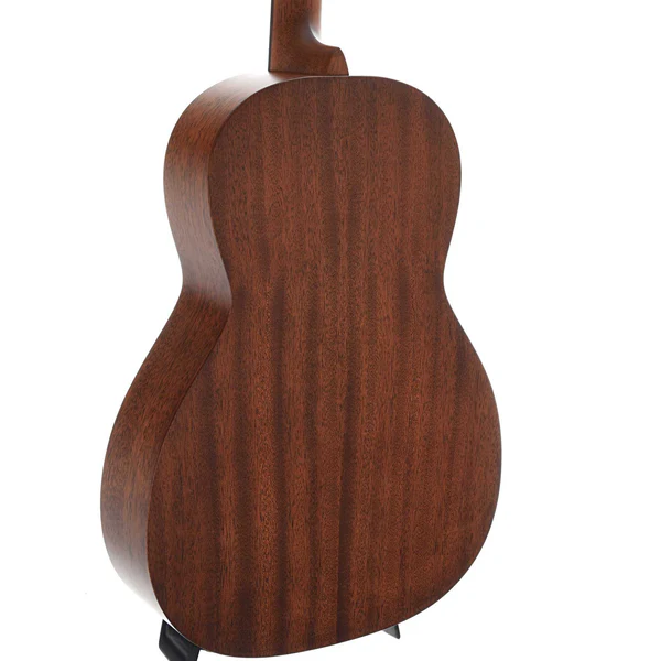 000-15SM: junção do braço no 12º traste, headstock vazado (slotted), estética vintage e resposta de graves mais evidente devido ao deslocamento da ponte — ideal para quem busca timbre “all-mahogany” com caráter clássico.