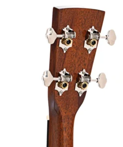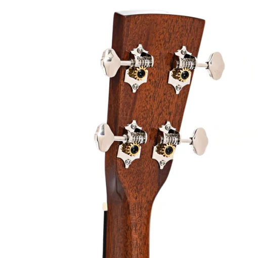 O braço em mogno é esguio e proporciona uma ação rápida e confortável, ideal para passagens ágeis. A escala em Santos Rosewood (ou East Indian rosewood em algumas versões) oferece uma experiência suave ao toque e excelente articulação das notas. As tarraxas estilo vintage com botões “butterbean” possuem engrenagem 14:1, garantindo afinação estável e precisa.