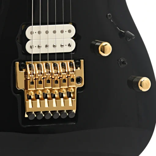 O sistema de ponte Lo-Pro Edge Tremolo entrega estabilidade e versatilidade para dive-bombs e vibratos suaves. O sistema de nut é de tipo locking, garantindo afinação estável, com retainer bar, e tarraxas Gotoh, além dos componentes com acabamento em ouro, que elevam o visual e a durabilidade.