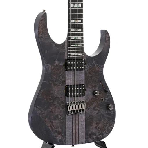 A Ibanez Premium RGT1221PB é uma guitarra elétrica da linha Premium, criada para oferecer nível de desempenho e acabamento surpreendentemente próximo da série Prestige, mas com excelente custo-benefício. Seu corpo apresenta asa de basswood e top de poplar burl de 3 mm, enquanto o braço neck-through em 7 peças de maple e nogueira garante sustentação e resposta rápida. A escala de ébano com inlays de acrílico e abalone, frets jumbo em aço inoxidável com acabamento premium, e diapasão de 24 casas compõem uma experiência de toque ágil e confortável. O perfil Wizard III torna os solos e o deslocamento pela escala fluidos e precisos.