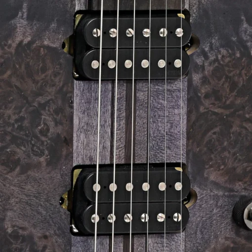 O sistema de captadores inclui os renomados DiMarzio Air Norton (braço) e The Tone Zone (ponte), ambos passivos e com imãs Alnico, entregando timbres ricos, com ótimo suporte para distorção, ao mesmo tempo em que preservam clareza nos limpos. O sistema de captura dyna-MIX 10 com Alter Switch oferece até 10 combinações sonoras, incluindo modos humbucker e power-tap (semi-single-coil), ampliando significativamente a versatilidade tonal. A ponte fixa Mono-rail proporciona excelente sustain e estabilidade, livre de interferência entre cordas, e as tarraxas travantes Gotoh MG-T garantem afinação segura e troca de cordas prática. E além do visual sofisticado e hardware cosmo-black, os pontos luminescentes auxiliam a visualização em palcos escuros.