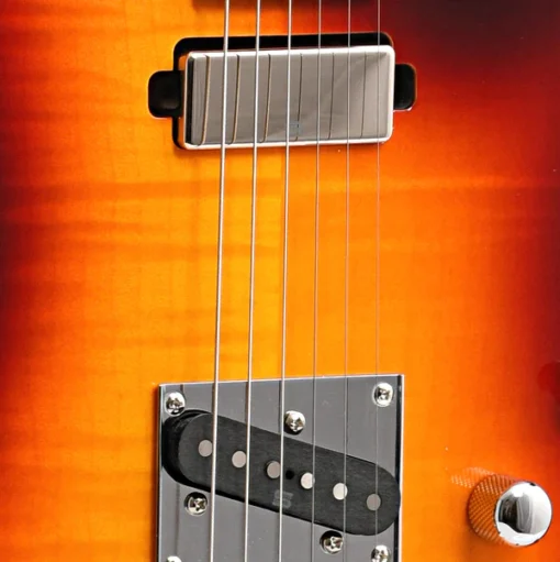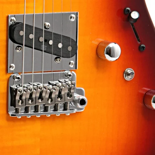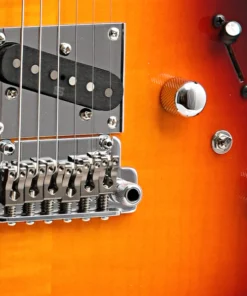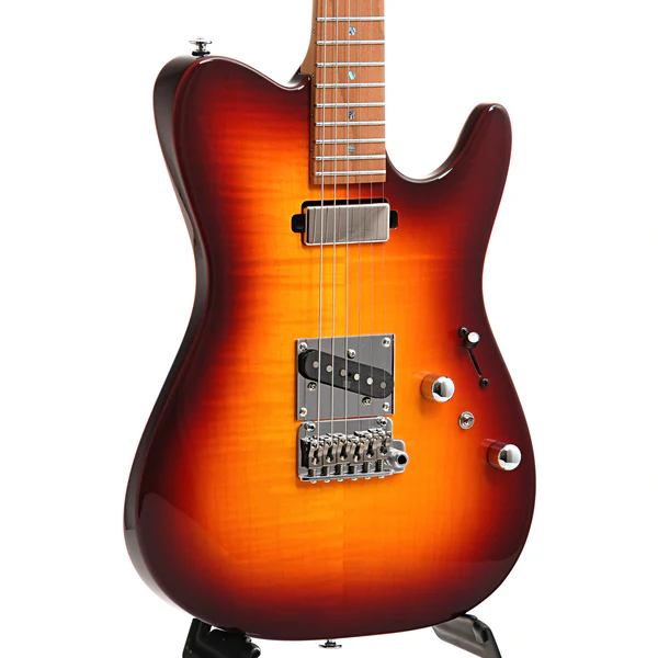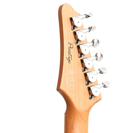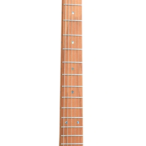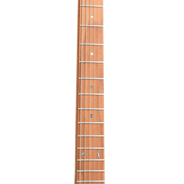 O braço em maple torrado (S-Tech Wood Roasted Maple) oferece maior estabilidade e resistência a mudanças climáticas, além de um toque suave e confortável para performances prolongadas. O acabamento Sunset Burst ressalta o detalhe do maple flamejado, garantindo um visual sofisticado.