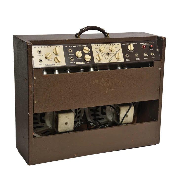 O Magnatone Custom 280 se destaca por oferecer um vibrato estéreo exclusivo que nenhum outro amplificador da época reproduziu com tanta fidelidade.