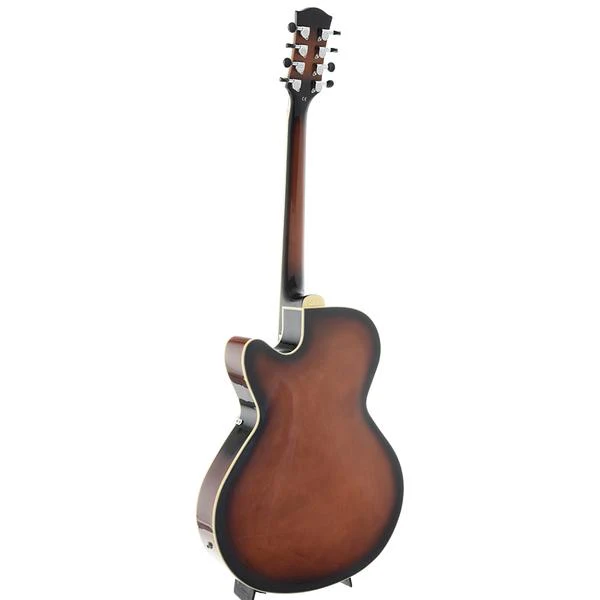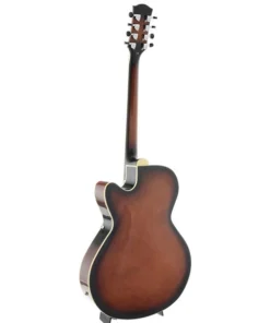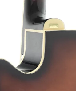 Seu corpo no estilo archtop apresenta tampo sólido em abeto e laterais/fundo em maple, proporcionando projeção poderosa e clareza sonora. O braço com escala em blackwood e trastes largos assegura conforto na execução, enquanto o cutaway veneziano garante fácil acesso às notas mais agudas.