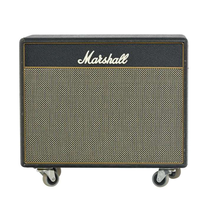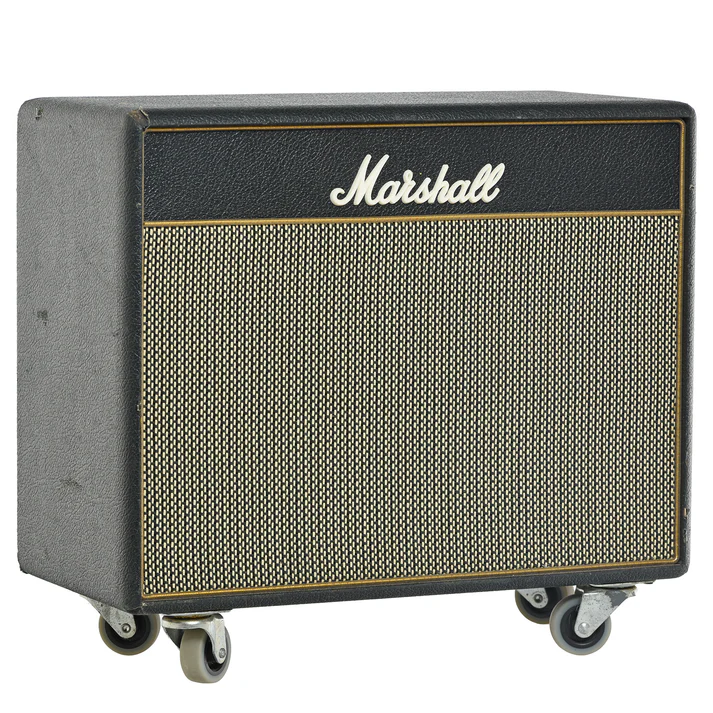 Marshall 1912 Cab – Gabinete 1×12, potência maior (150W), com Celestion G12B-150. Mais indicada para palcos médios e grandes.