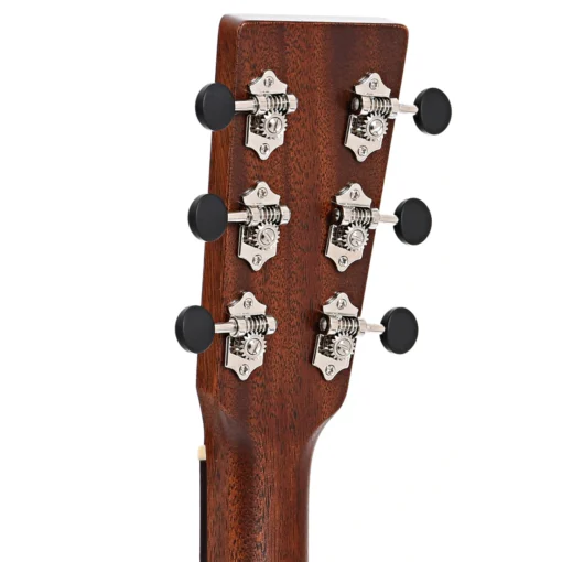 Detalhes como escala de 25,4″, braço “Modified Low Oval” e fingerboard em rosewood da Índia (com inlay “Diamonds & Squares – Short Pattern”) garantem conforto, tocabilidade e estética refinada. O saddle compensado em osso e as tarraxas nickel com botões butterbean completam a experiência clássica, precisa e acolhedora ao toque.