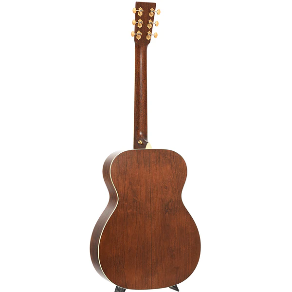 A Martin OME Cherry representa o ápice da união entre sustentabilidade e performance. Construída exclusivamente com madeiras certificadas pelo Forest Stewardship Council (FSC), inclui tampo de Sitka spruce, laterais e fundo em cerejeira, braço de mogno, escala e ponte em ébano, e castellete em African blackwood — todos originários de manejo responsável.