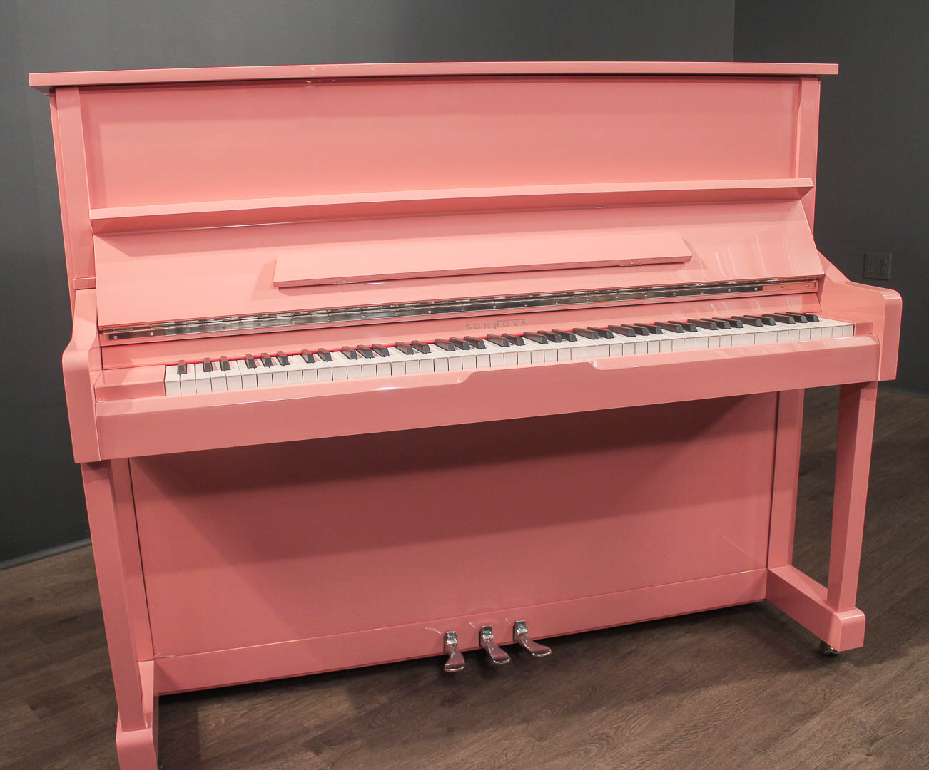 Sua pintura em rosa alto brilho proporciona um toque de personalidade única, enquanto os pedais e detalhes em níquel agregam sofisticação. O design contemporâneo do U48 permite que ele se encaixe perfeitamente em qualquer ambiente, seja em uma sala de estar moderna ou em um estúdio musical profissional.