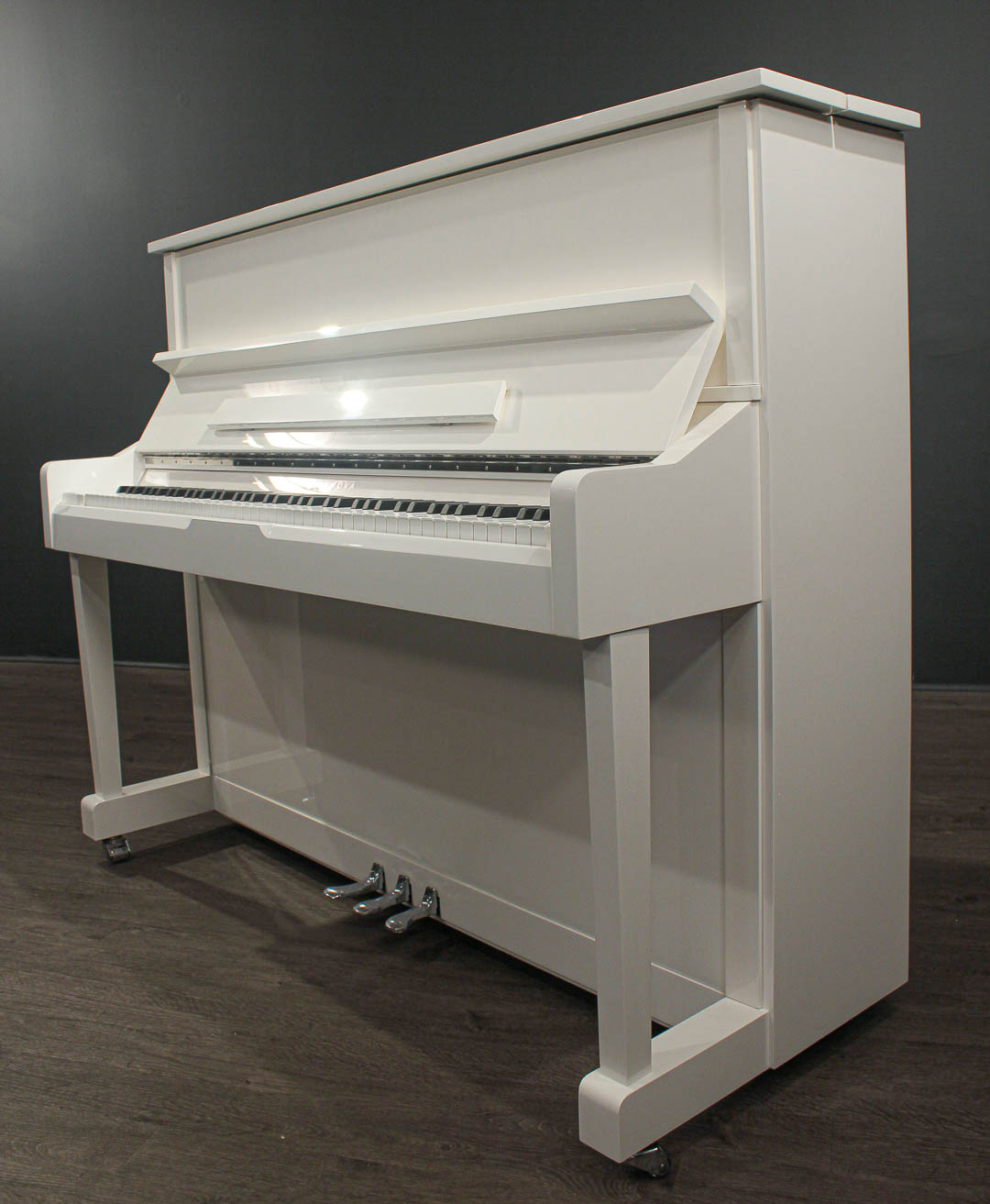 Seu acabamento branco alto brilho confere uma presença marcante e elegante, enquanto os pedais e detalhes em níquel acrescentam um toque de refinamento que destaca o instrumento como peça de decoração e instrumento musical. Ideal para músicos profissionais, estudantes avançados e entusiastas que valorizam a combinação perfeita entre estética e funcionalidade.