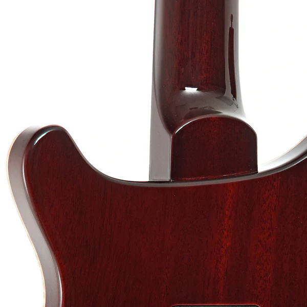 Seu visual estonteante com o acabamento Fire Red Burst e topo em maple convive com uma estrutura robusta de mahogany, oferecendo calor tonal, ressonância e sustain excepcionais. O corpo sólido (solidbody) esculpido no estilo “violin carve” se destaca com o verniz nitro de alto brilho.