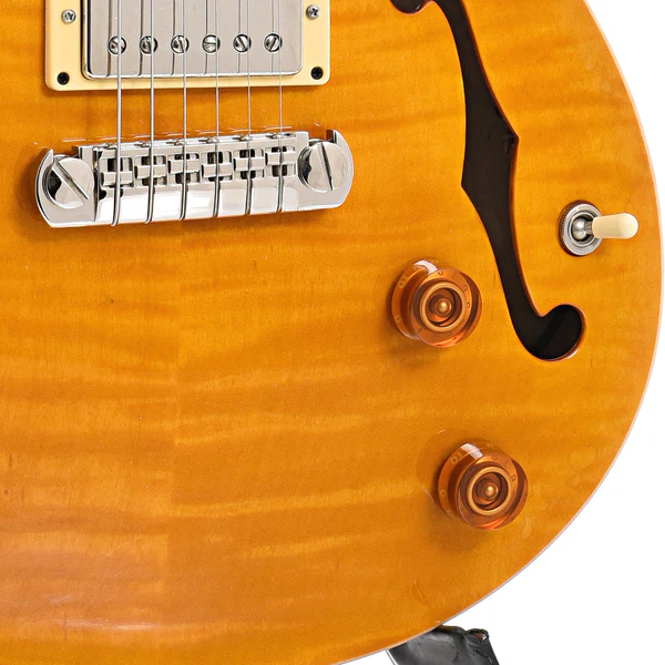 Hollowbody II (McCarty): top e fundo em maple, laterais em mogno—voz mais ressonante e rica.