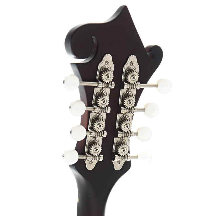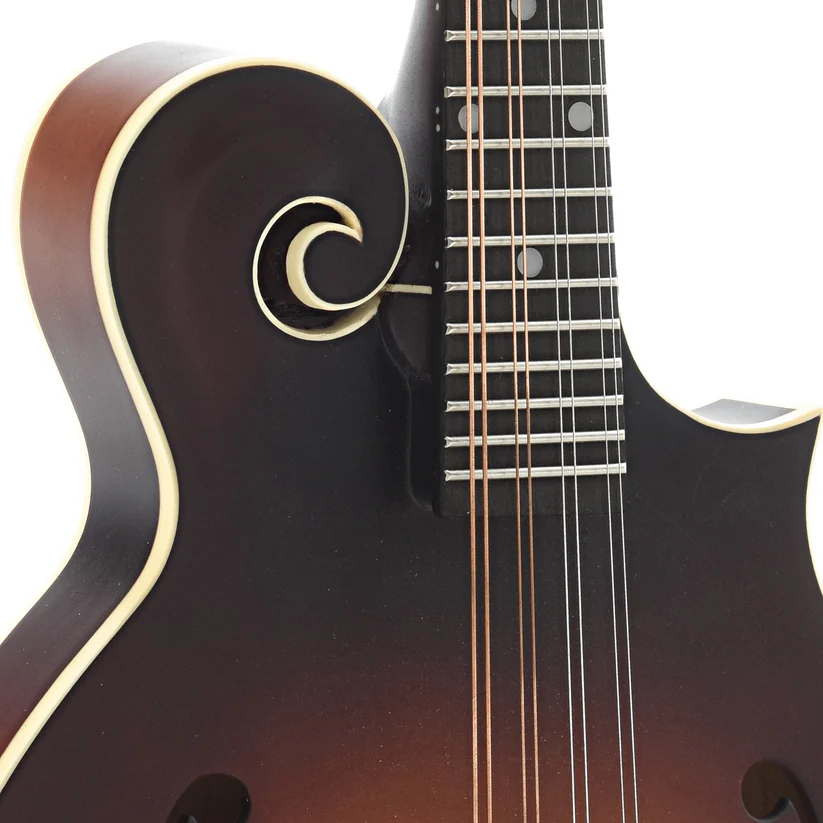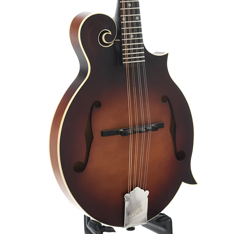 O The Loar Honey Creek LM-310F combina o charme das curvas F-Style com um topo sólido em spruce entalhado à mão, proporcionando clareza sonora e um “chop” marcante. Um mandolim premium com excelente custo-benefício.